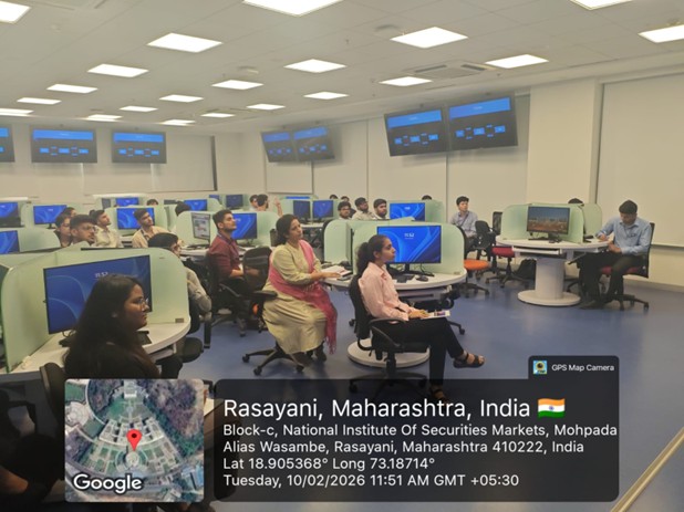 Day 2 included practical workshops. Mr. Roshan Bainalwar conducted a technical analysis session on equity, derivatives, and commodities, explaining chart patterns and indicators. Mr. Vineet Gupta’s session on fixed income and money markets explained the role of government and corporate bonds, RBI rates, and instruments like commercial papers. The final session by Mr. Ajoy Phatak offered an overview of blockchain and cryptocurrency, discussing its advantages, risks, and prospects.
